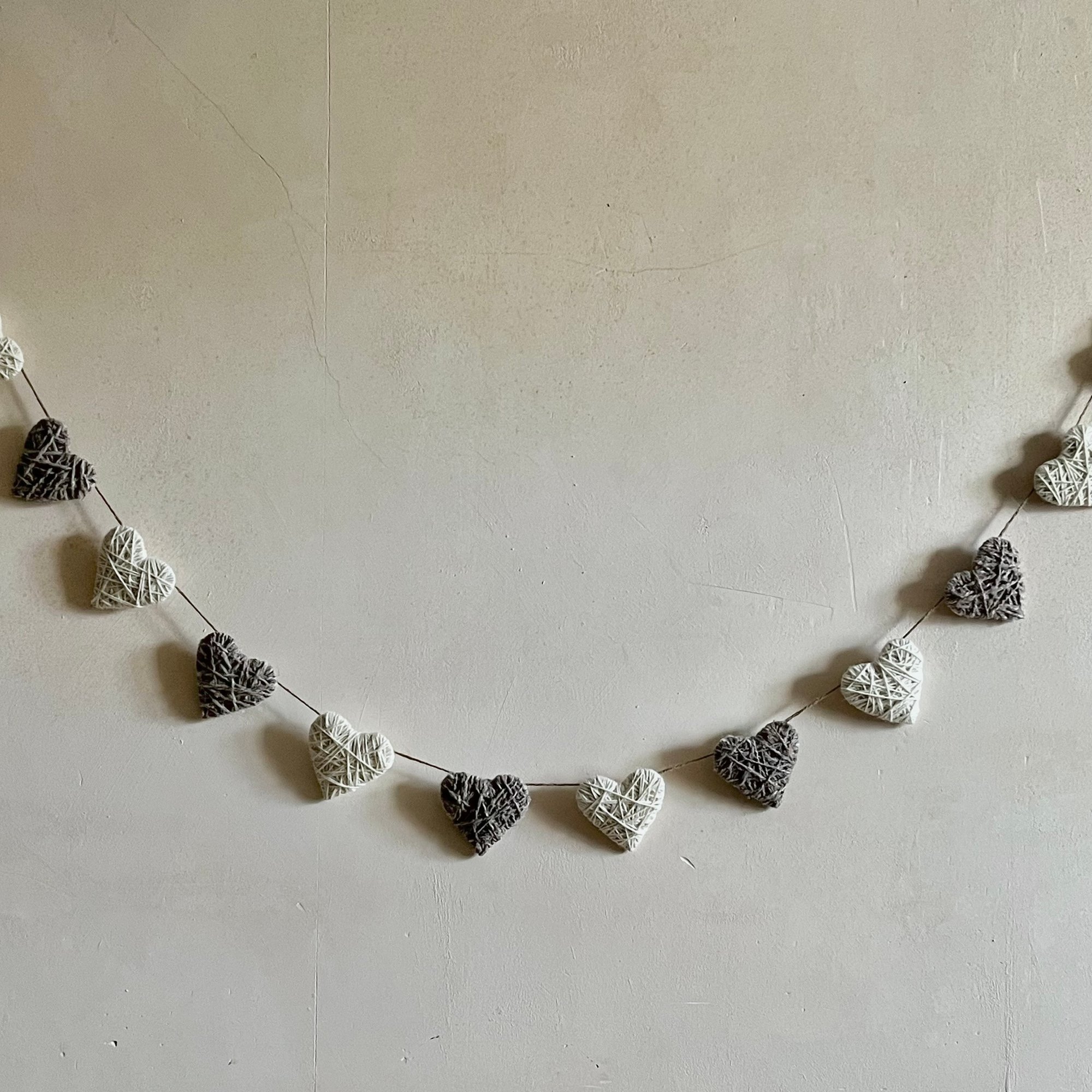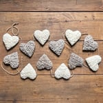 This garland was created with 100% natural wool (undyed, white) and organic hand-processed Corriedale lambswool. With recyclable/biodegradable/compostable centers, jute cording, and no adhesives, the garland is fully biodegradable. Approximately 2" gaps between hearts for a garland length of 5' (plus 9" lengths beyond end hearts). Hearts each measure 3.5" high. The jute cord can be easily removed and replaced with another material if desired. Custom orders are accepted.