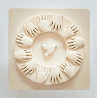 Each non-toxic plaque is cast from the original sculpture. The plaque is currently available in the finish ANTIQUE (as it is handmade, please allow for slight variations as a result). Notched on the back for wall display or it could be set upon a small easel for shelf or table display. Accompanied by a Certificate of Authenticity. Please allow for up to two weeks in turnaround time.